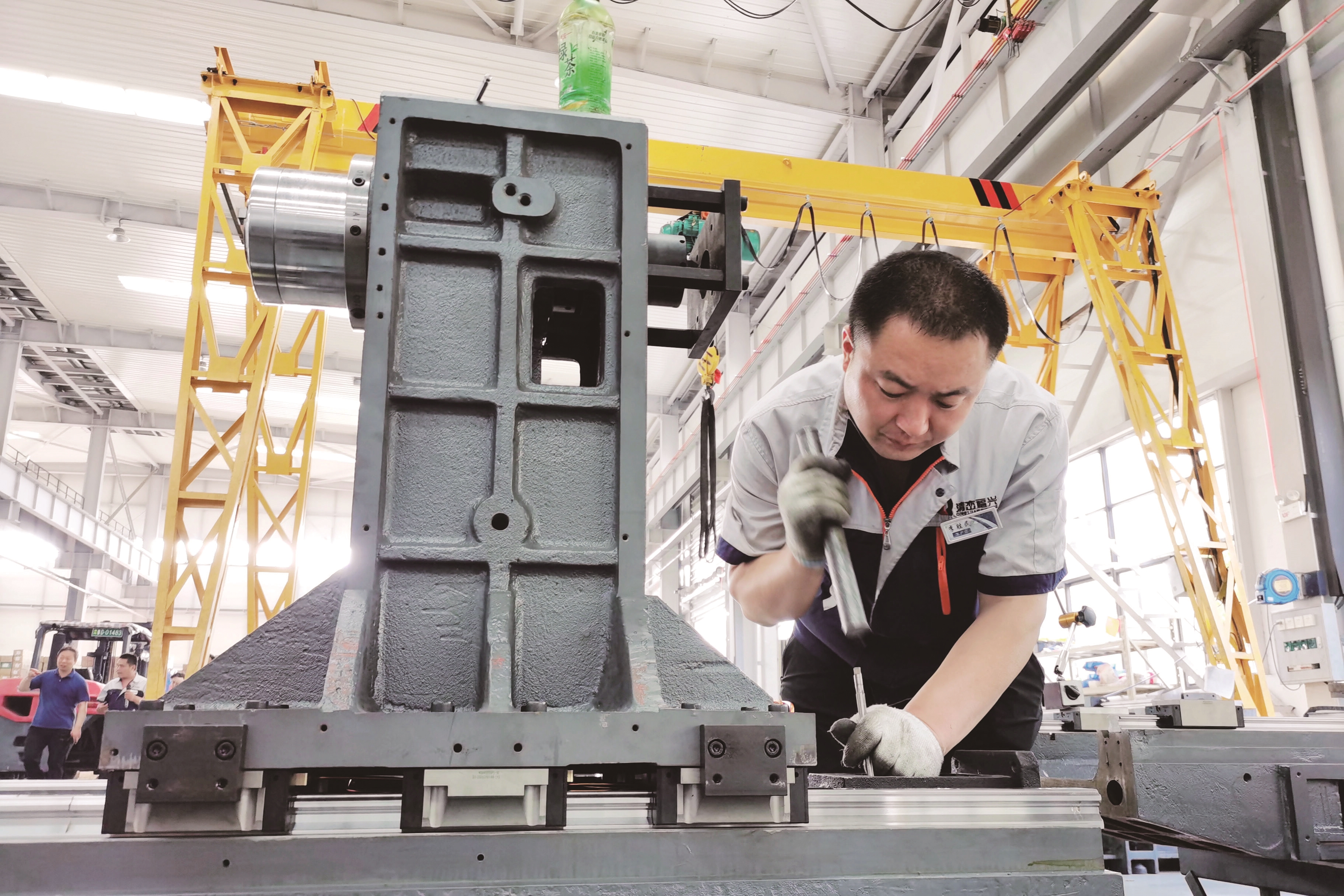 近日,清峦集团山东大汉智能科技公司的员工正在车间加工机床产品。面对工业互联网发展机遇,该公司主动调整战略方向,建立大数据产业基地,为生产及服务客户提供数据支持,实现了数字化智能生产。