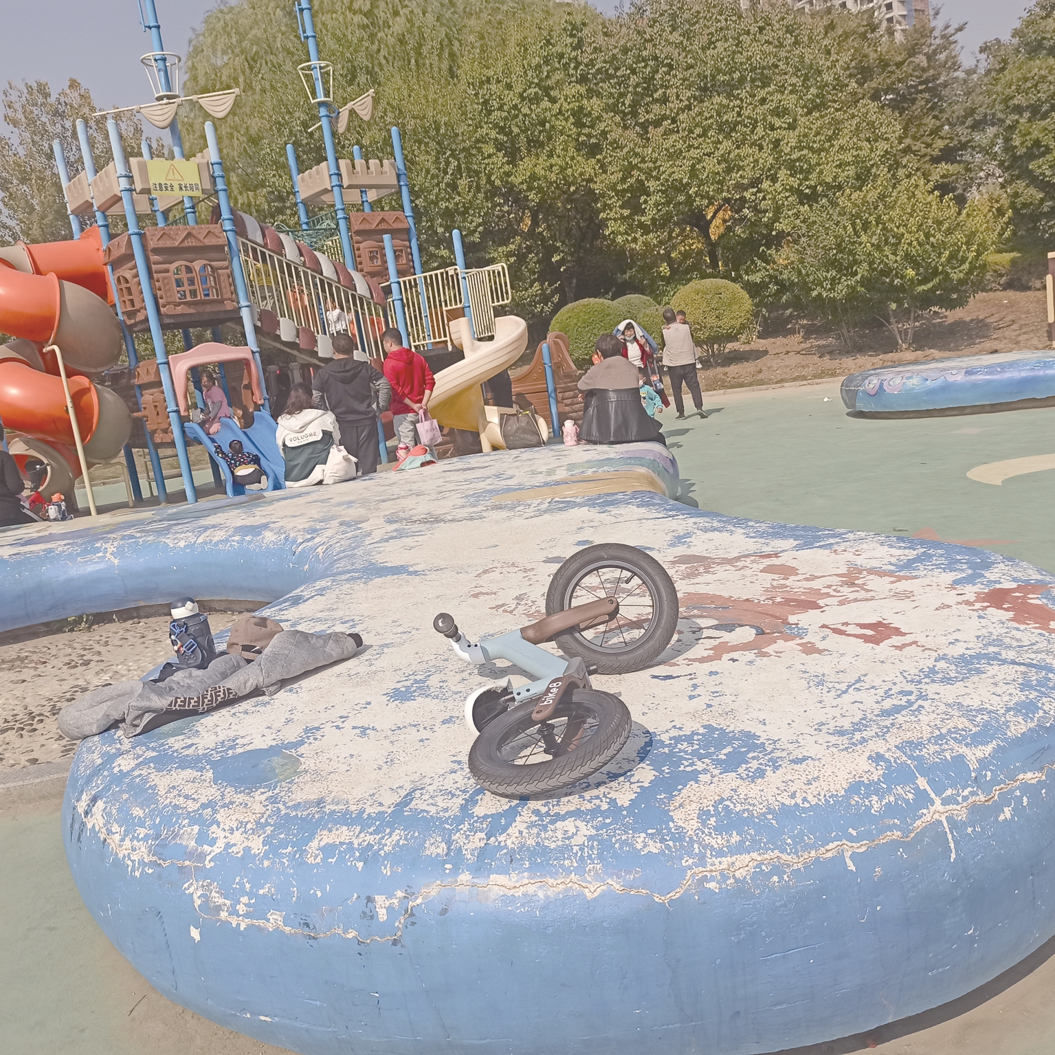 “以前,我经常带孩子来这里,他最喜欢来沙坑玩,我坐在附近的台子上看着他。”武先生说,许多小朋友在这里爬上爬下,时间一长,把台子上面的蓝色油漆磨掉了,看起来旧旧的。