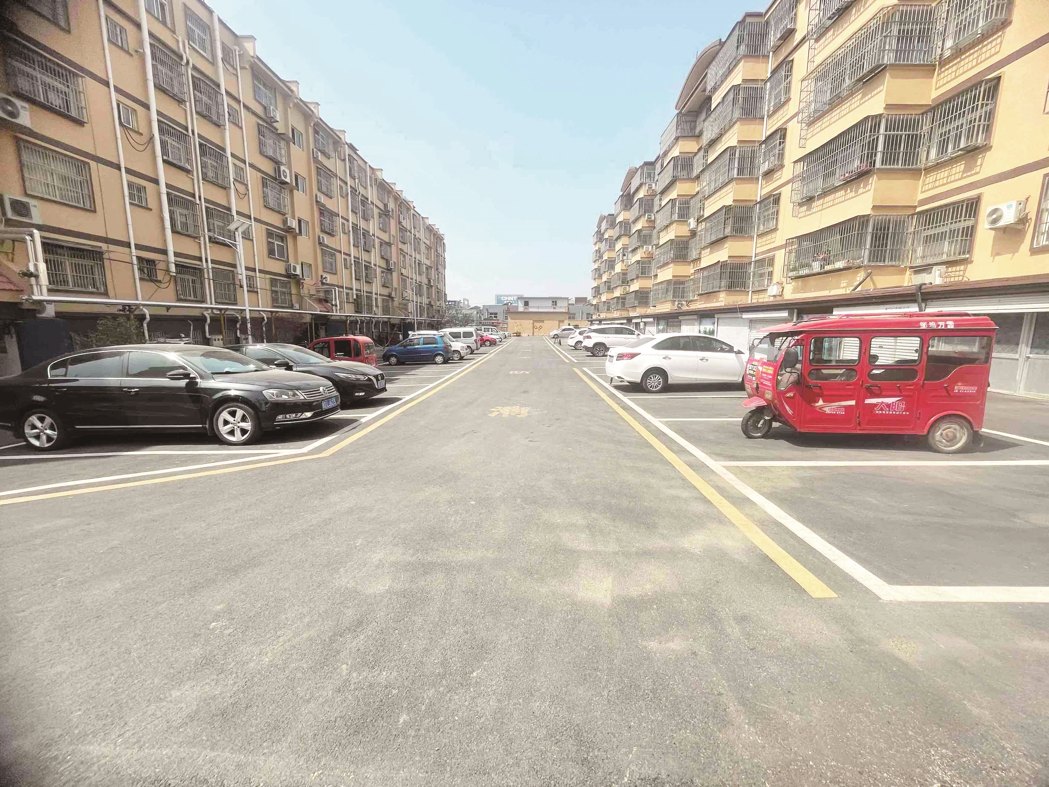 当日,记者赶到新城托后北区,发现小区地面平坦了,还施划了停车位,车辆有序停放,以前凸起的窨井盖也“消失”了。有的业主坐在休闲椅上聊天,有的业主带着孩子在健身区玩游戏。