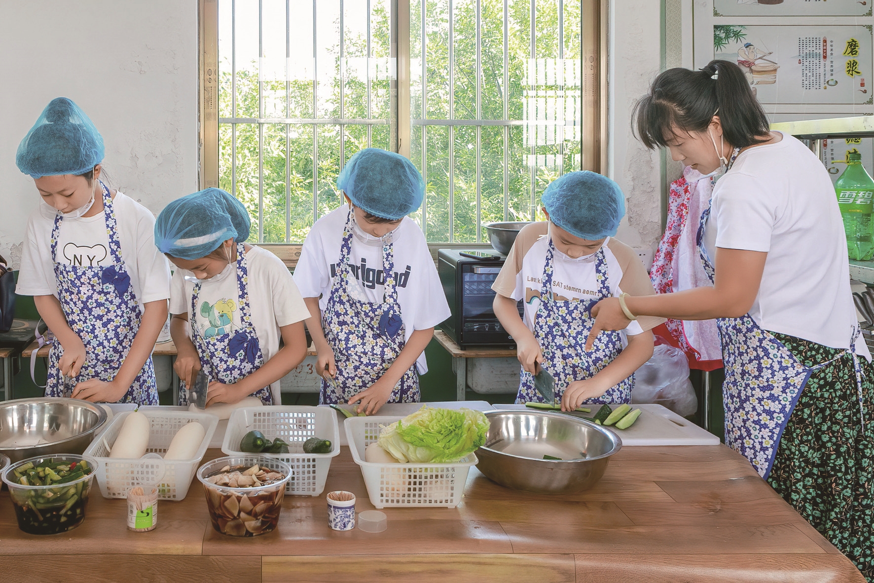 近日,在滕州市大坞镇凫山快乐成长营,孩子在老师的指导下练习刀功。成长营里的42名志愿者老师为21名困境儿童提供免费暑期托管服务,包含公益课堂、外出研学、艺术培养等。