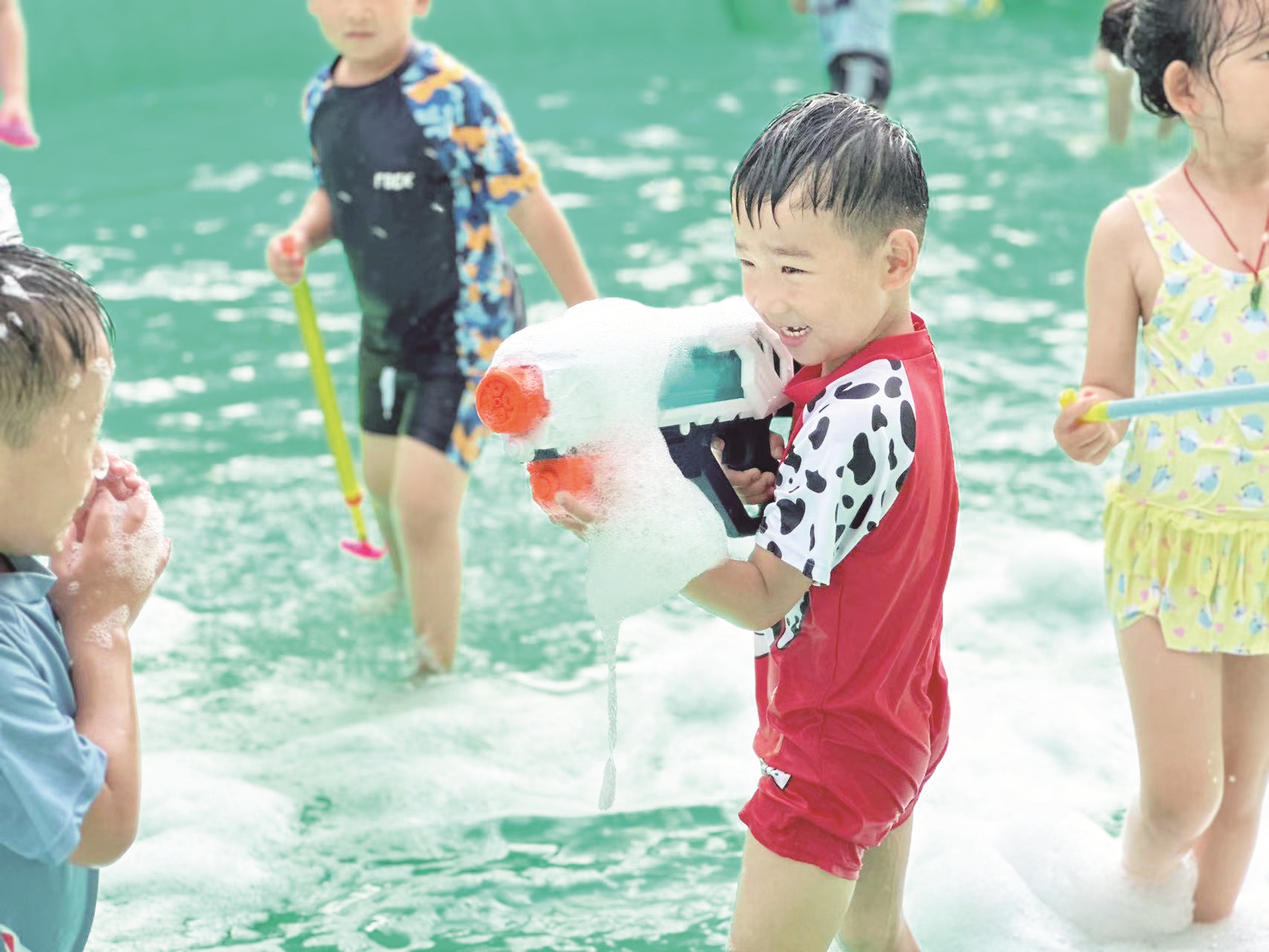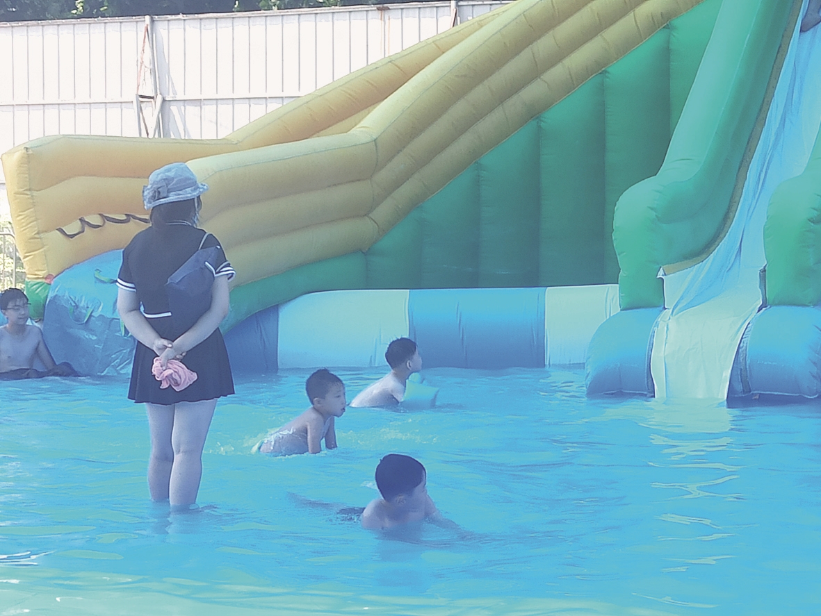 “吃完饭,带着孩子来这里玩会儿,还能解暑。”8月4日,薛城市民种先生带着5岁的儿子来到家附近的一家水上乐园玩水。种先生说,他已经带孩子来玩好几次了,孩子玩得开心,自己也能在旁边歇会,是个不错的看娃地儿。种先生认为,这种在家门口开放的水上乐园,虽然设施简单,能在水中玩耍、纳凉、嬉闹,孩子们还是很快乐的。