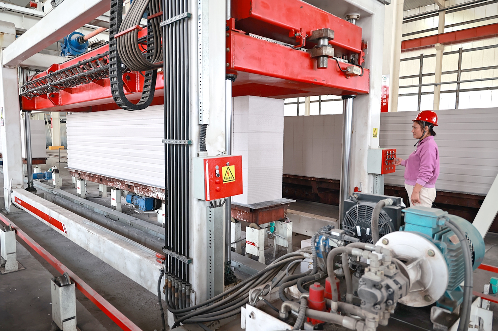 近日,在位于山亭区的山东连银山环保建材有限公司内,工人在操作机器设备。该公司创新推出纳米硅酸钙粉体、ALC轻质板材等5种高成长性新产品,打造研发、设计、制造、安装一站式供应服务,延伸建材产业链条,产品附加值提升30%以上。 (记者 苏羽 摄)
