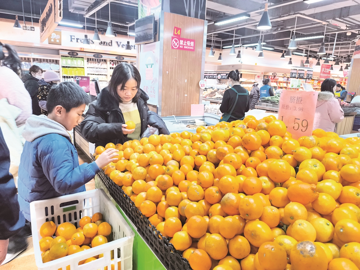 ▼冬天是吃橙子的季节。12月25日,薛城区永兴路一家超市内,原价3.98元/500g的脐橙,促销价仅售1.59元/500g,吸引了不少消费者选购。