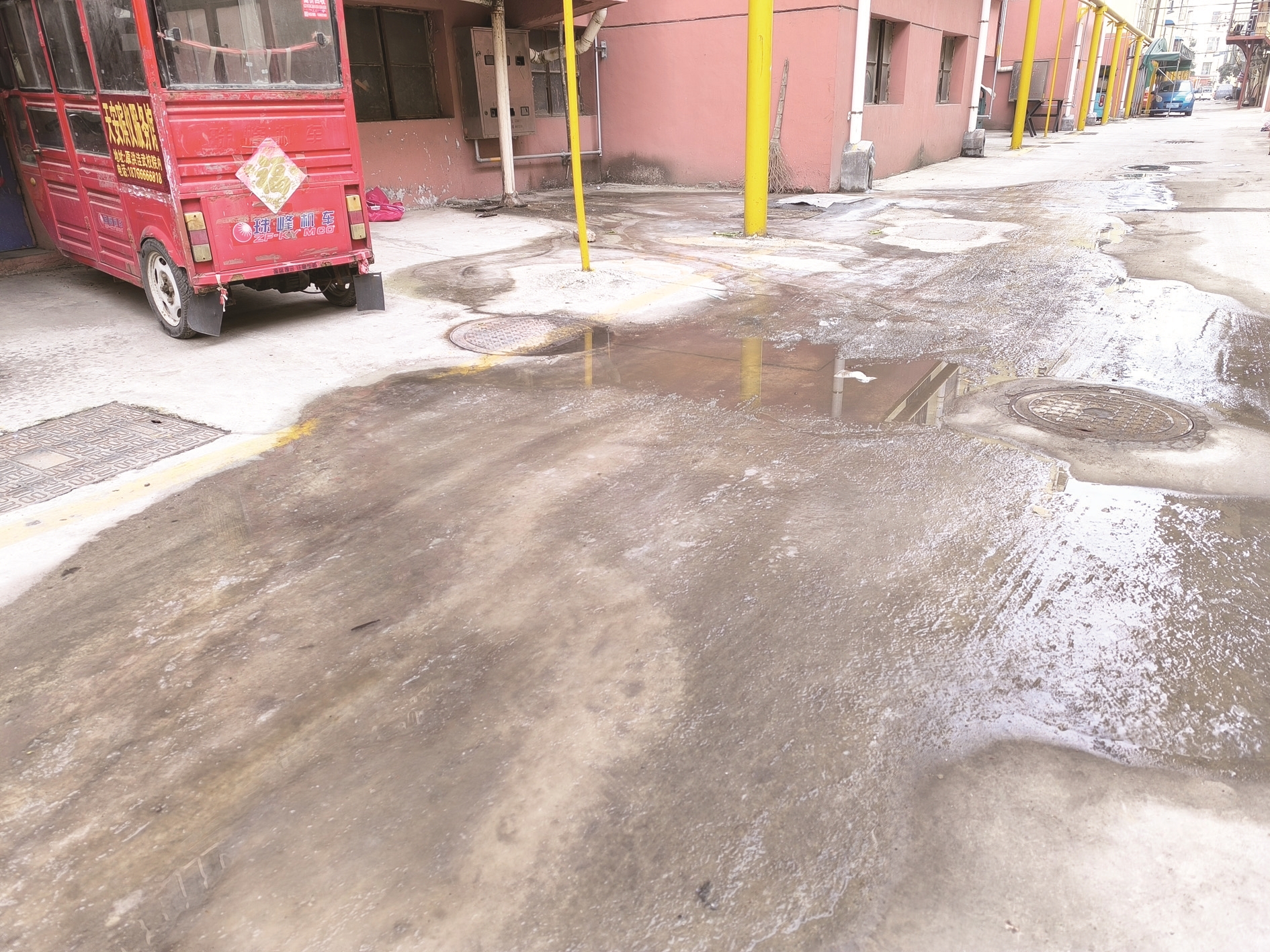 “路面上有食物残渣和积水,夏天的时候臭烘烘的,冬天还容易结冰,单元楼前是居民回家的必经之路,路面湿滑让人非常郁闷。”居民刘先生说。