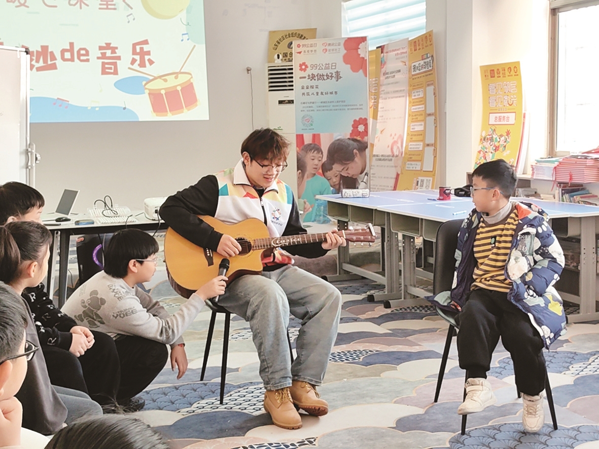 1月30日,“青春社区 伙伴计划”的大学生们在峄城区坛山街道兴国社区的“暖心课堂”内,教孩子们智力数学、趣味手语、音乐律动等,孩子们寒假里有了好去处,也为家长们解决了后顾之忧。 (记者 苏羽 孙越 摄)