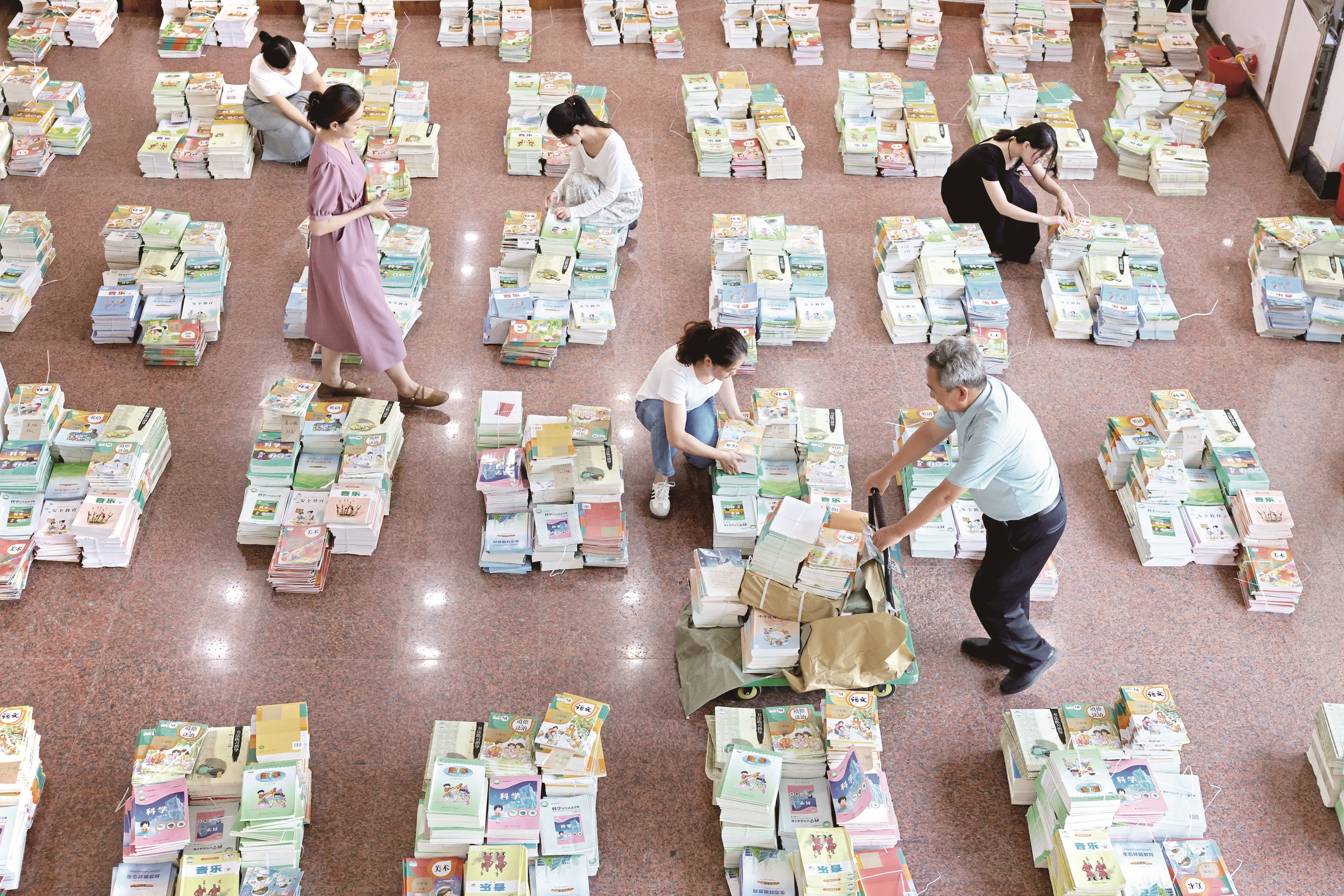 8月28日,市中区文化路小学的老师在清点新学期教材。秋季新学期开学在即,我市各中小学校积极做好开学前的准备工作,迎接新学期的到来。 (通讯员 吉喆 摄)