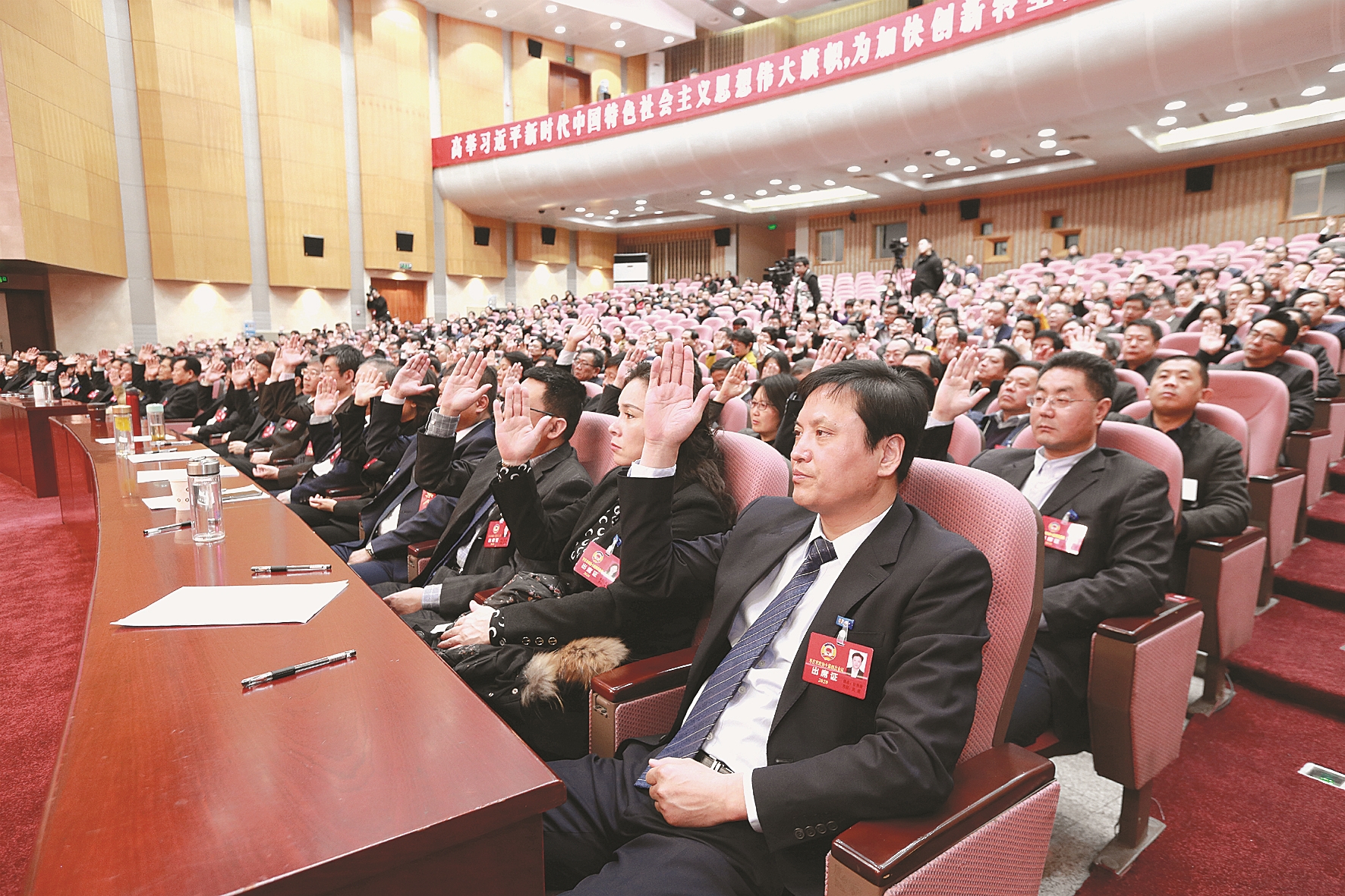 1月9日上午,参加市政协十届四次会议的委员举手表决通过各项决议。 (记者 甄宗奎 摄)