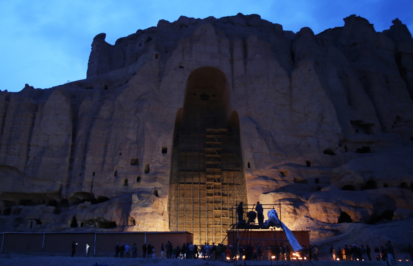 包含着大约3000个大小佛窟的阿富汗巴米扬山谷2003年被联合国教科文组织整体列为世界濒危文化遗产,是阿国内两处世界文化遗产之一。而举世闻名的巴米扬大佛就坐落在这条古老的山谷内。这两尊伟岸的立佛于2001年被塔利班政权炸毁,只剩下两座高大的佛窟。 (新华社发)