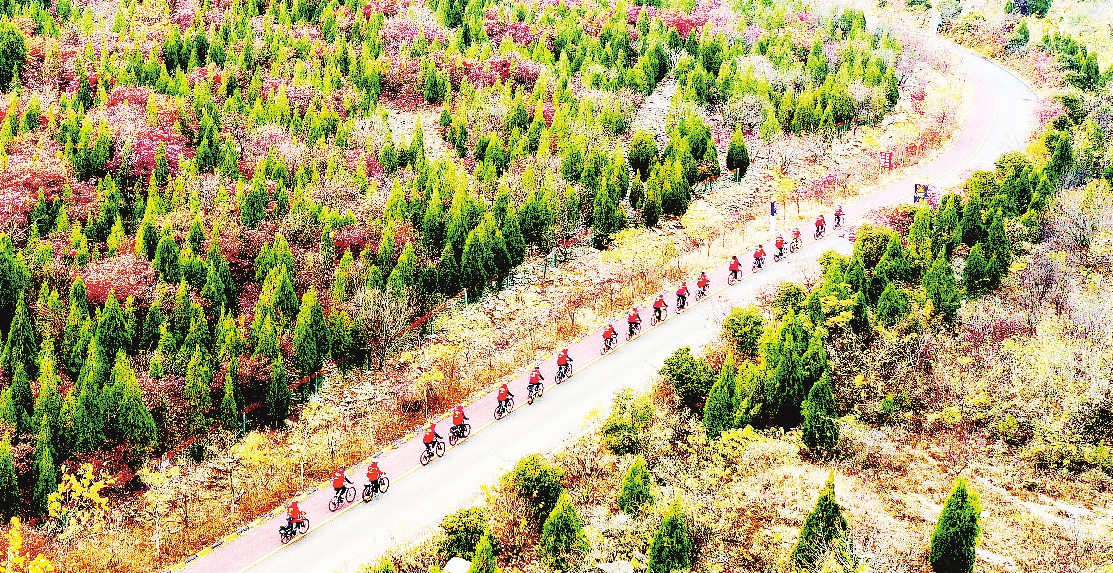 骑行爱好者在凤凰绿道市中区段上骑行。该段凤凰绿道全长18公里,是市中区南部山区休闲、娱乐、健身于一体的综合文化旅游场所。 (吉喆 摄)