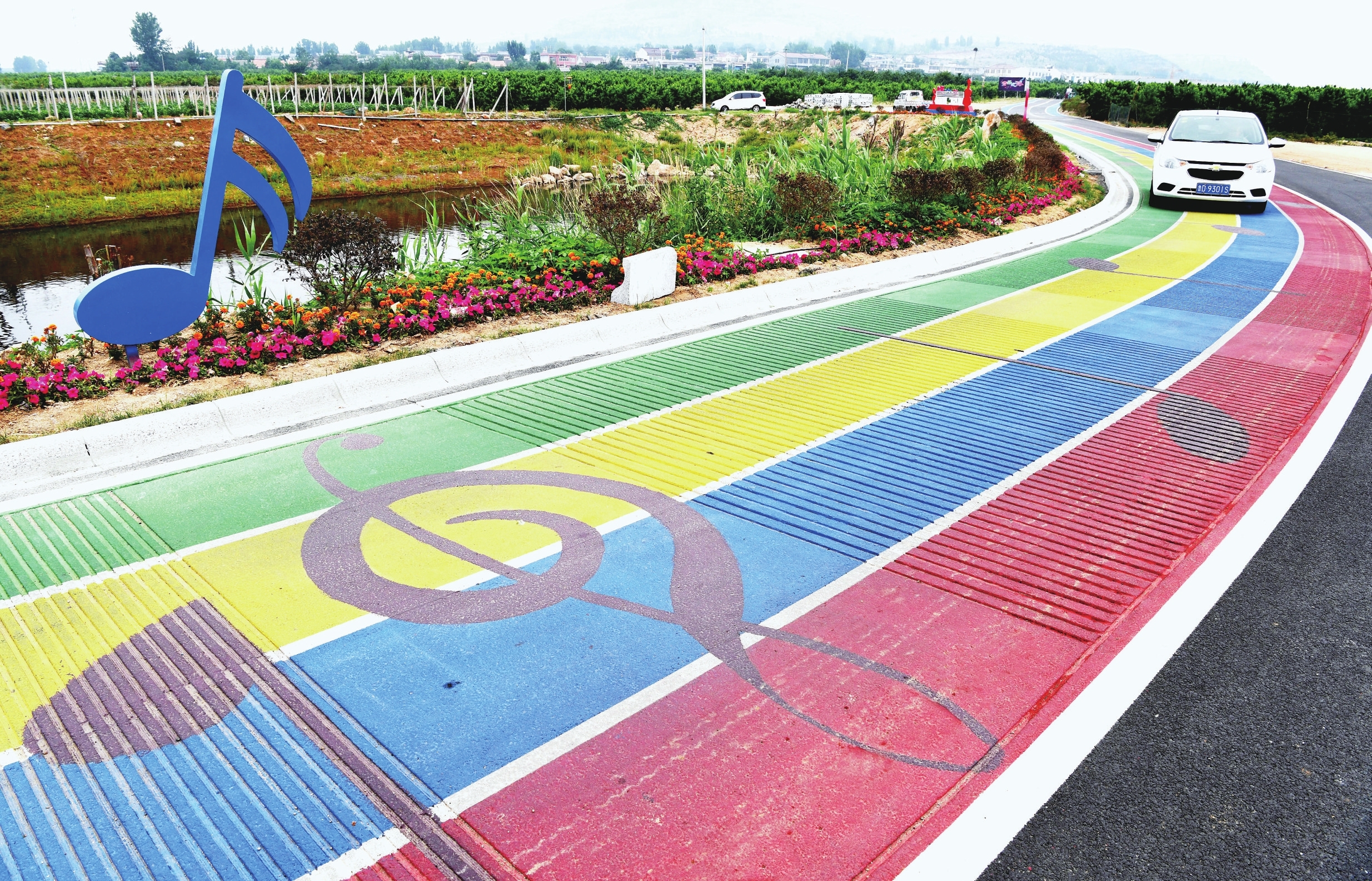 山亭区冯卯镇在建设温庄村乡村道路时,专门打造了一段《歌唱祖国》音乐之路,设计时速40公里/小时,时长约28秒,距离约280米。当汽车匀速行驶在该路面上时,轮胎和特制路面的摩擦即可发出歌曲的旋律来。 (李宗宪 摄)