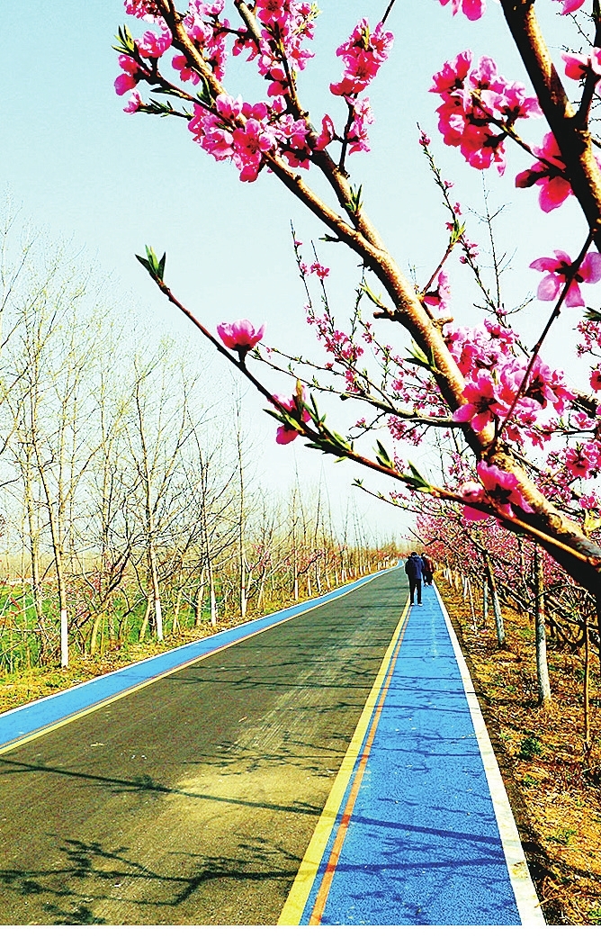 台儿庄区邳庄镇环城绿道长廊是台儿庄区环城生态走廊的重要组成部分,全长20公里,其中绚丽多彩的网红“彩虹绿道”约占10公里,是地域特色鲜明的绿道景观林带。 (张严新 摄)