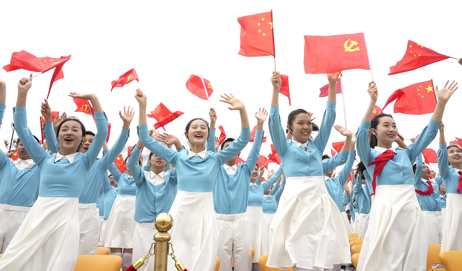 目睹这盛世华章,来到天安门城楼上的“七一勋章”获得者马毛姐思绪翻涌。那个战乱频仍、衰败凋零的中国早已一去不返,一个欣欣向荣、开放自信的新时代中国巍然屹立世界东方。“我认定只有跟着共产党,人民才可以过上好日子。”马毛姐说。