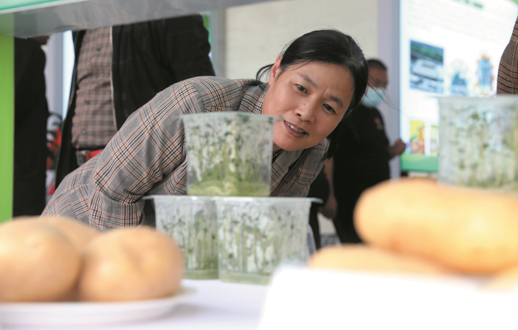 10月23日,观众在观看马铃薯脱毒苗。