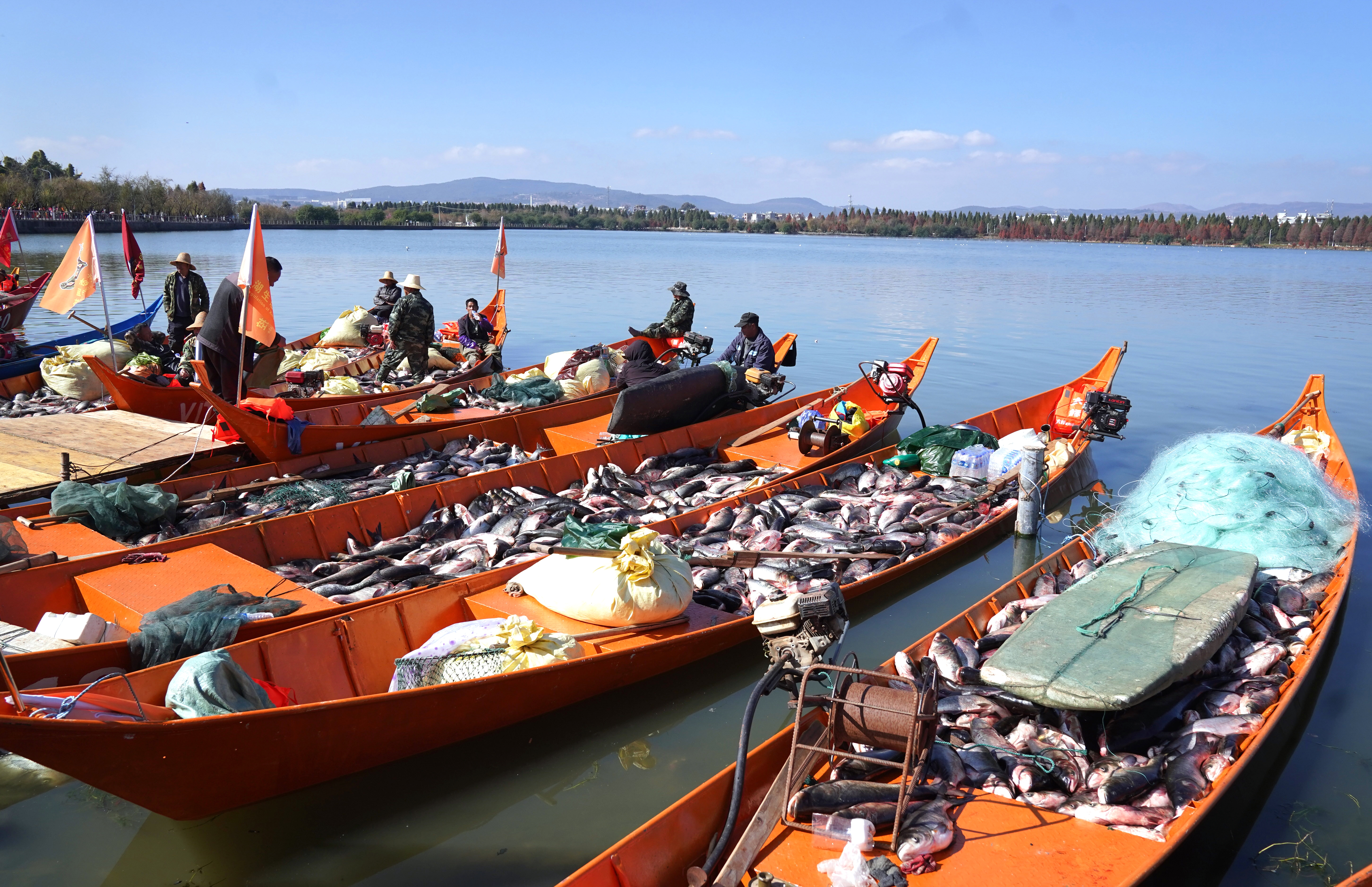 当日,云南·江川第十七届开渔系列活动暨高原湖泊水产品交易会在云南省玉溪市江川区星云湖南岸开幕。本届开渔节举办捕鱼比赛、文艺演出、渔人家宴、休闲垂钓等系列活动。活动将持续到2025年1月13日。 新华社发(梁志强 摄)