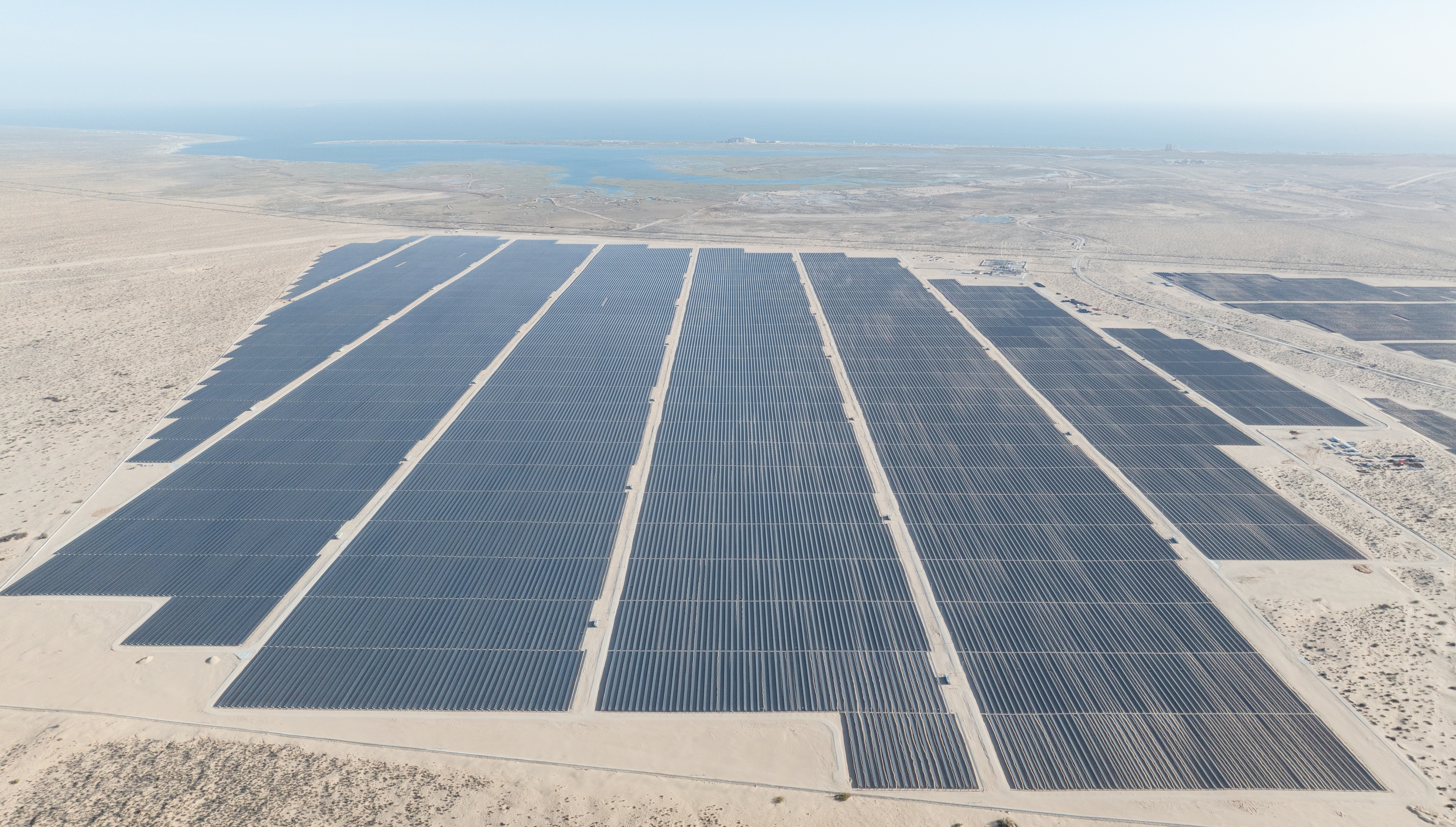 这是2025年4月2日在墨西哥佩尼亚斯科港附近拍摄的中国能源建设集团承建的佩尼亚斯科港光伏项目二期工程(无人机照片)。 (新华社记者 李梦馨 摄)
