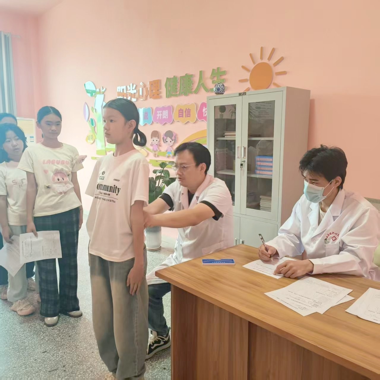 为守护青少年骨骼健康,近日,山亭区西集镇卫生院专家团队走进刘庄小学,为全校学生开展脊柱弯曲专项检测活动,将健康关怀送到学生身边。 (管庆军 马娟 摄)