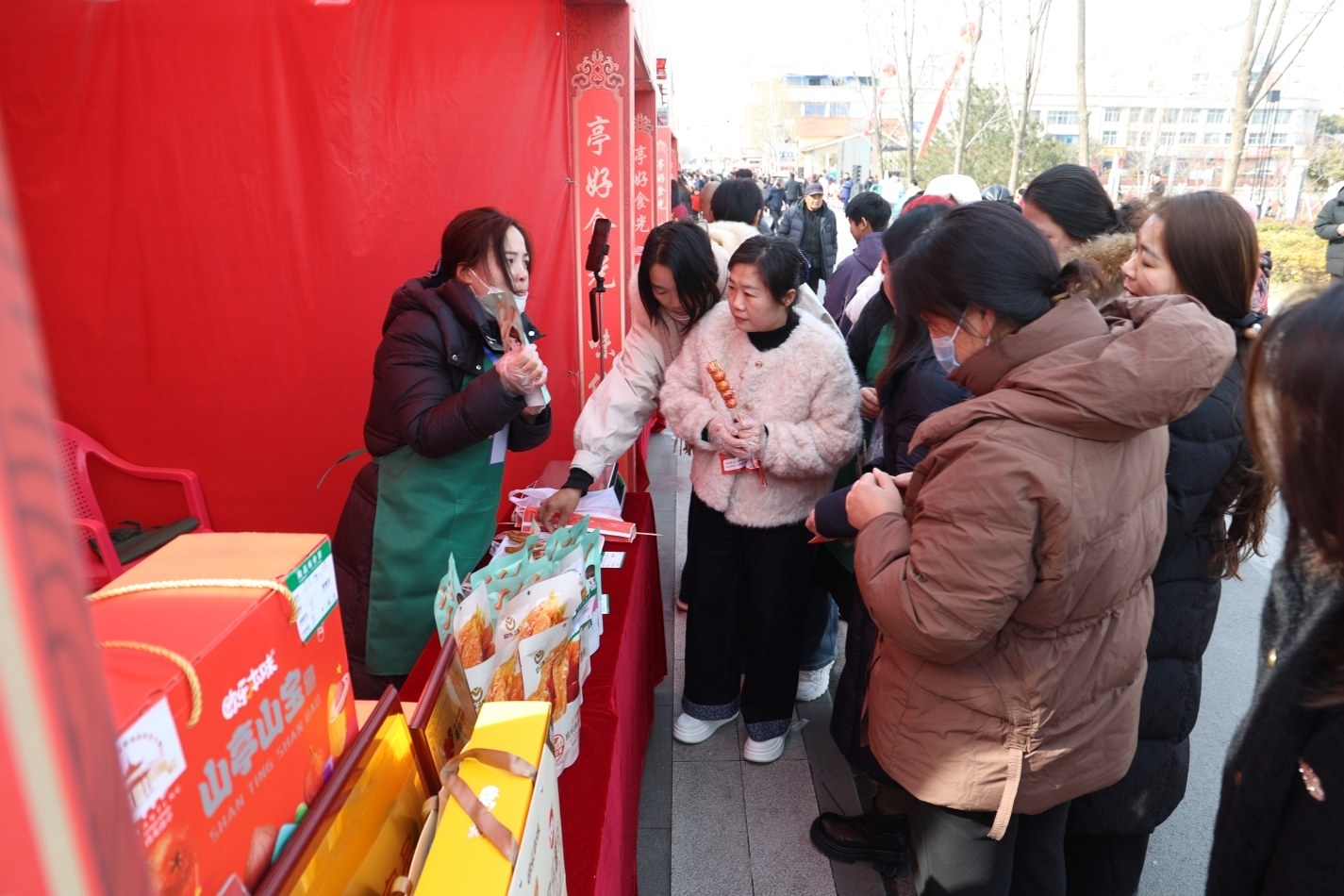 2月9日,“亭好食光 味你而来”2026首届山亭食品年货大集在城区香港街开市,十里八乡的乡亲们涌入大集,买年货、看演出、尝美食,在升腾的烟火气与扑面而来的年俗风味里迎接新年。 (记者 刘明 摄)