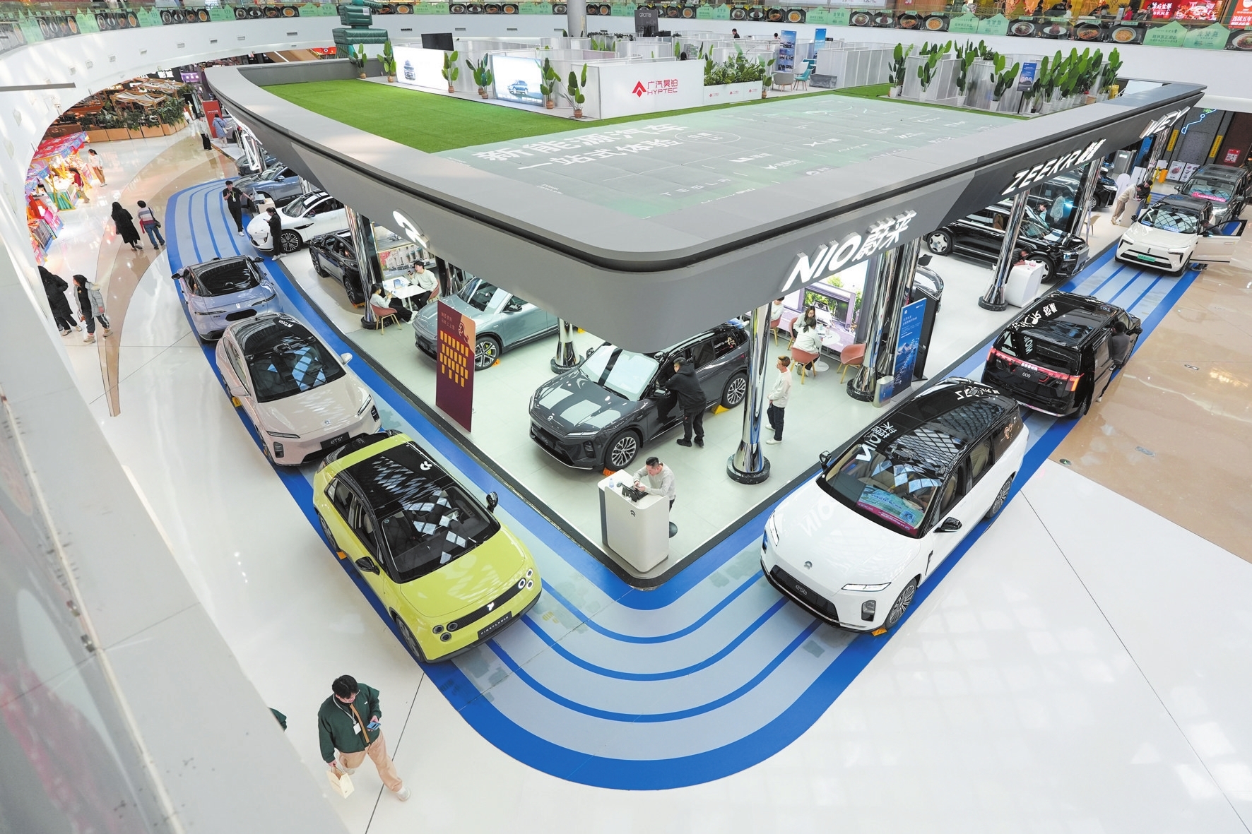 在北京市朝阳区一个商场内,市民在了解新能源汽车(2026年2月11日摄)。 (新华社记者 鞠焕宗 摄)