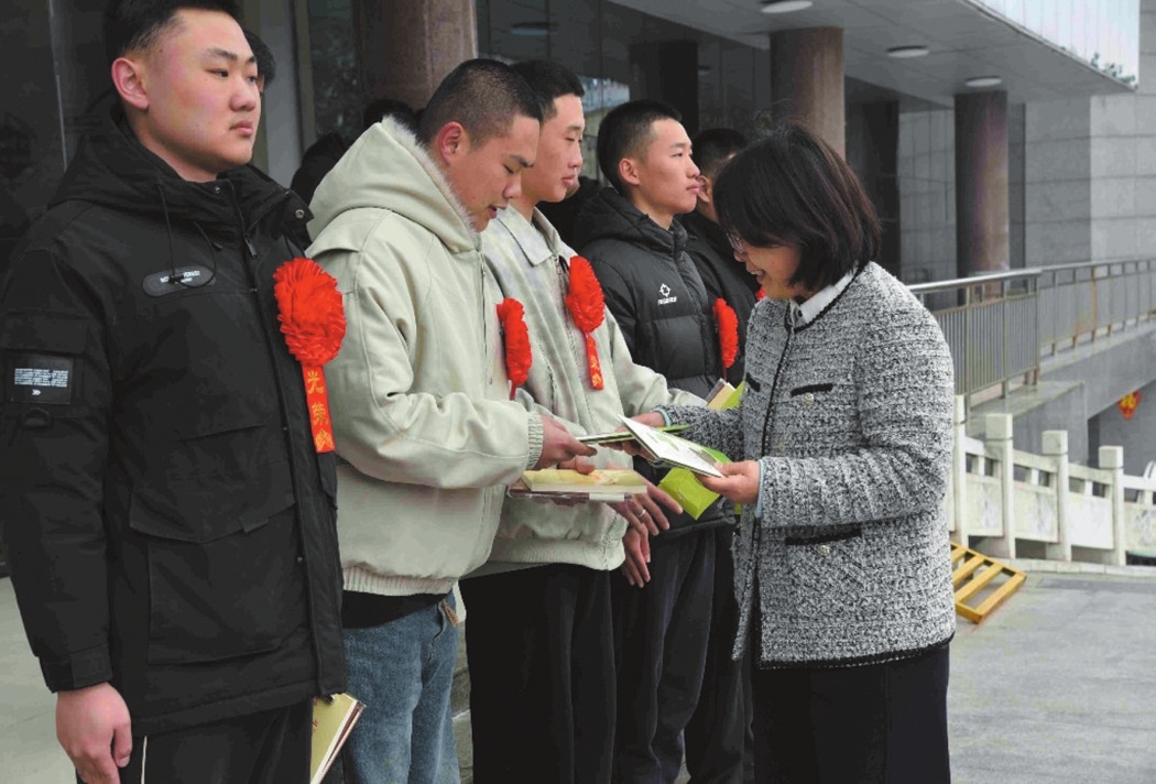 3月15日,台儿庄区运河街道党工委为7名入伍新兵送行,为他们送上书籍、鞋垫等慰问品,鼓励他们要坚定理想信念,锤炼过硬本领,为家乡人民争光添彩。(记者 孔浩 通讯员 李红军 摄)