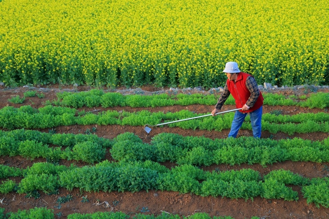 图为:4月6日,凫城镇张庄村农民在田间劳作。