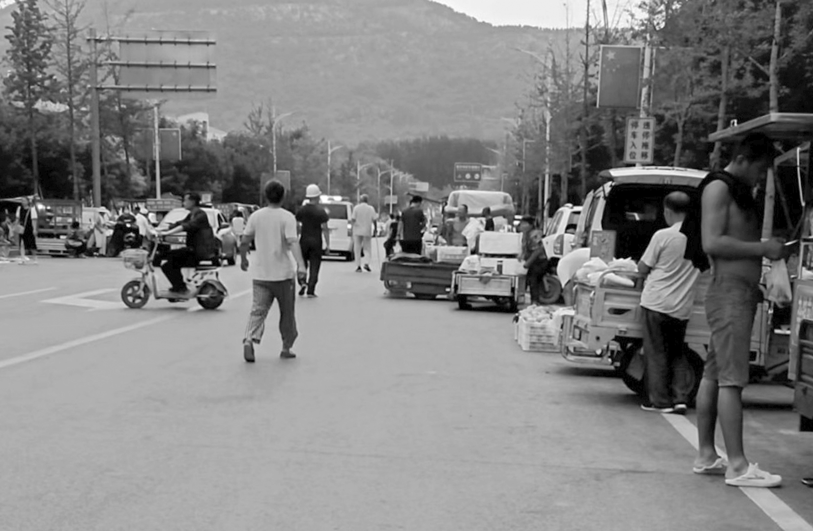 “起初就一两家卖煎饼、小吃的商贩,之后陆续有附近农户加入进来,将自家种的蔬菜水果拿来售卖,最后各类商家沿着马路两边乱摆乱卖起来,想在人行道上行走像极了‘赶集’,如果开车,又赶上买菜、卖菜的高峰时段,每次经过精神都高度紧张,连老手司机都觉得‘头大’,更不用说新手司机了,更可气的是想绕路都绕不开。”小区业主赵先生说,他曾多次见到有执法部门的工作人员对“马路市场”的商贩进行劝离,但工作人员一走,商贩们又卷土重来。