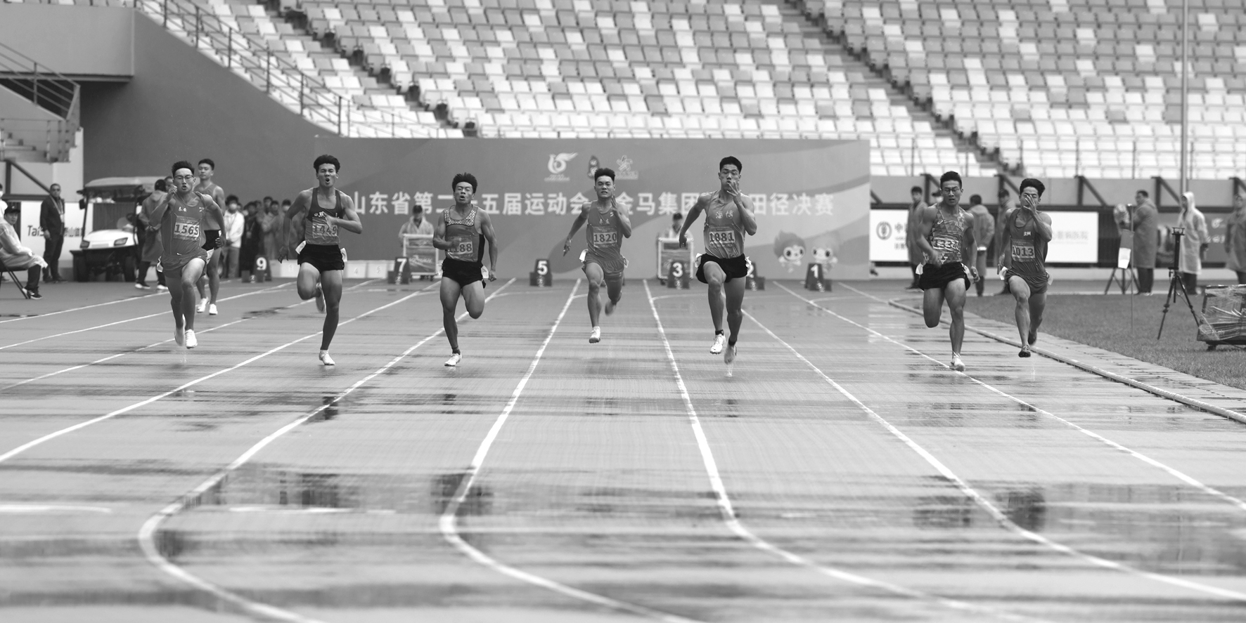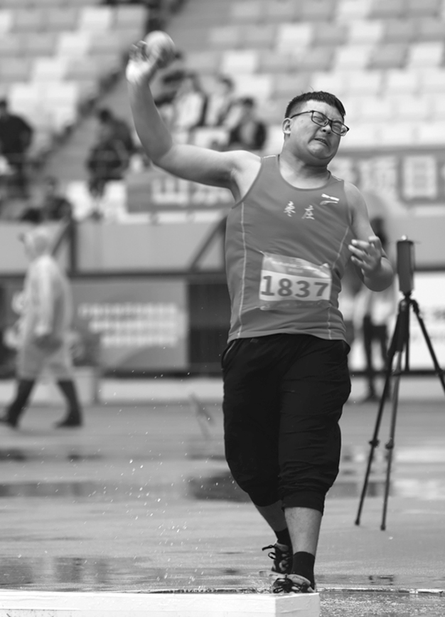 8月30日,省运会田径决赛开赛。当天进行了男子甲组100米、女子甲组100米等比赛的预决赛。枣庄市在男子甲组十项全能之三铅球、女子甲组跳远等均有选手参赛。田径赛场的第一金来自男子乙组5000米竞走项目,由潍坊选手李鹏获得。 (记者 王龙飞 摄)